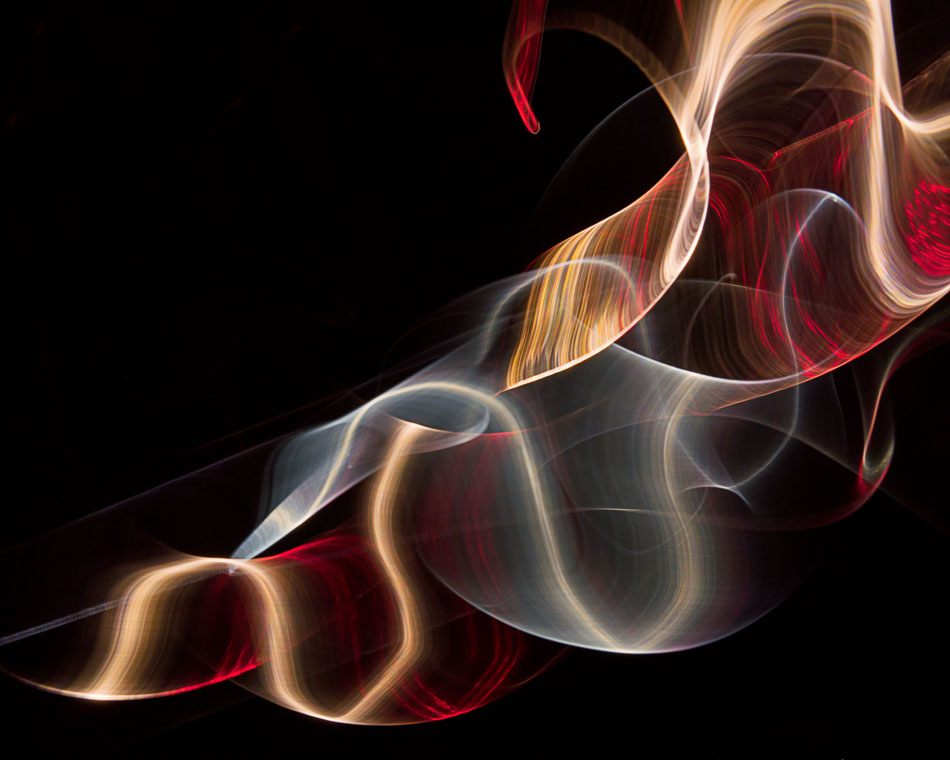 Exploring Movement with Light and Wire This series explores the effects of image distorion by intentionally moving the camera during a slow shutter speed across static pieces of wire in a black box. Variations created are one-of-a kind as light and color from one area are drawn into another and render the familiar into something mysterious and organic. Some immages are layered composites or in-camera multiple exposures.